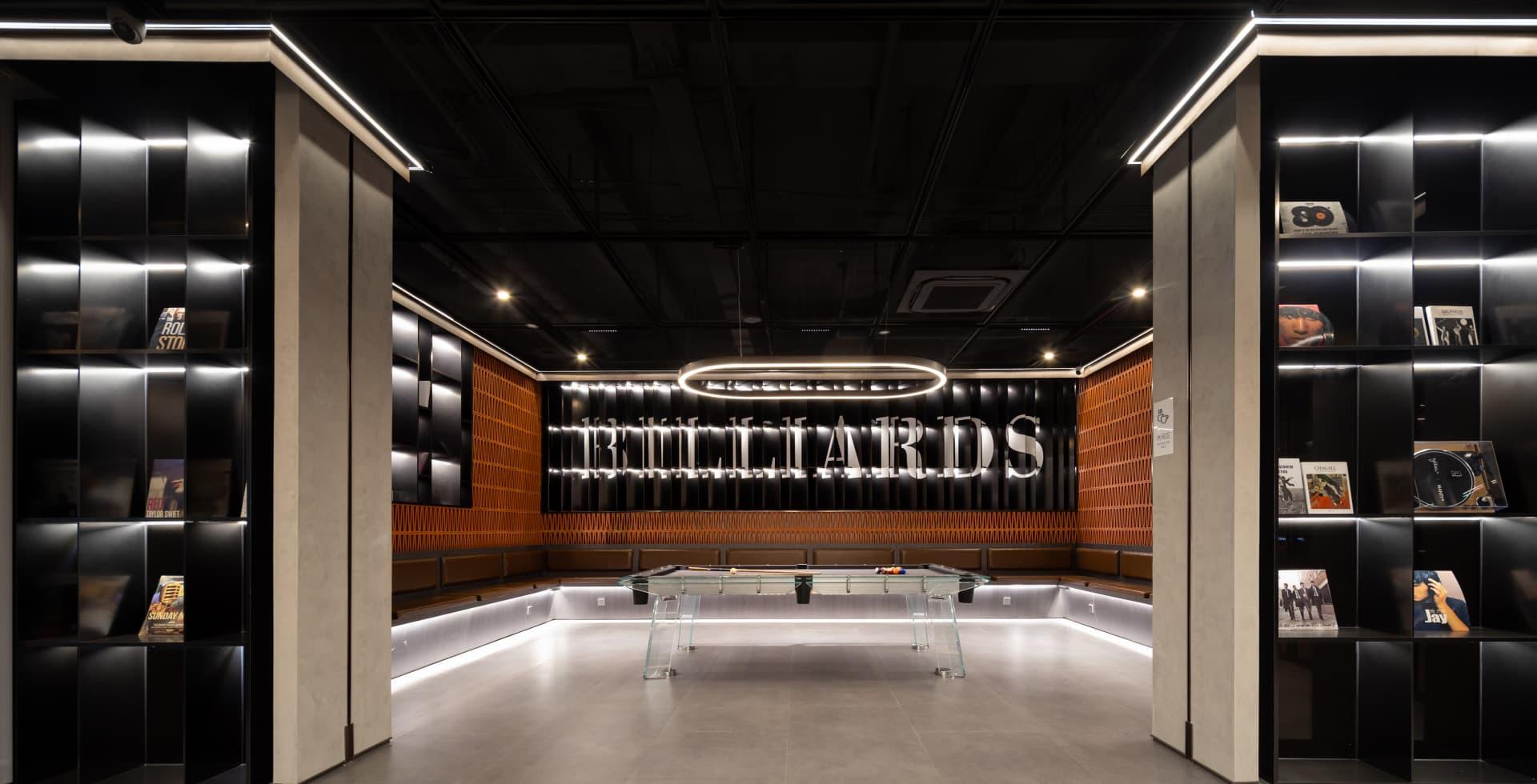 上原米修这次突破传统化现代风格,将生活馆以赛博朋克的风格进行设计,让工业风的粗犷和现代雅奢的精致完美融合。它不仅融入了年轻人喜爱的功能性和赛博元素,还展示了现代青年都市生活的新潮魅力。在这里,我们打造了符合年轻人居住习惯的空间场景,以及品质化、多样化的公共空间,旨在引导年轻人走出狭小的居住空间,勇敢地进行社交、健康运动和知识补给,享受多元化的正能量生活。