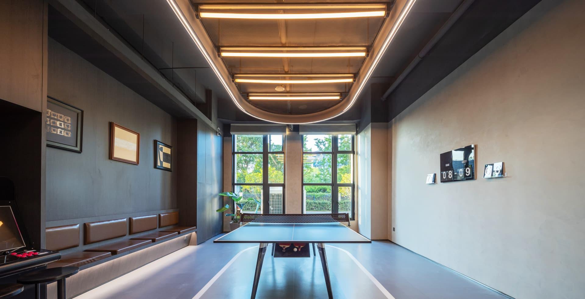 上原米修这次突破传统化现代风格,将生活馆以赛博朋克的风格进行设计,让工业风的粗犷和现代雅奢的精致完美融合。它不仅融入了年轻人喜爱的功能性和赛博元素,还展示了现代青年都市生活的新潮魅力。在这里,我们打造了符合年轻人居住习惯的空间场景,以及品质化、多样化的公共空间,旨在引导年轻人走出狭小的居住空间,勇敢地进行社交、健康运动和知识补给,享受多元化的正能量生活。